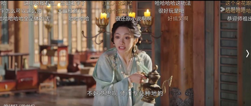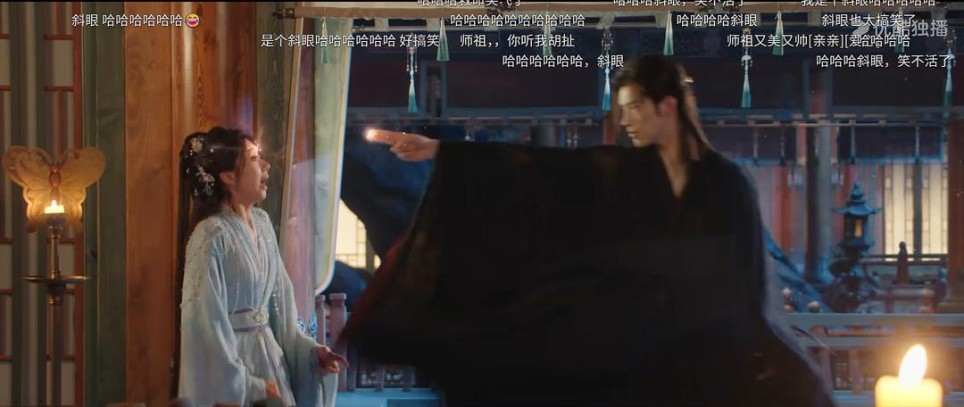 晚上,停雁睡到自然醒,出来就撞见师祖杀人了(实际是那个女生摘了那个什么幽昙花中毒了。)接着就出现这又紧张又好笑的一幕,在停雁视角就是一惊一乍,差点出殡呀。