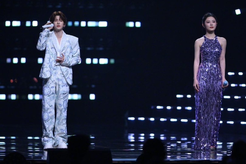 解晓东、高舒乔《中国娃》,邓小巧(香港)、伍珂玥、张天启、柳博《你的未来》,李建复(台湾)、胡夏《龙的传人》,R.E.D《中国话》,凌峰(台湾)《吾爱吾国》,姚晓棠、刘宇《追光》,陈丽君《戏》,《长安的荔枝》片尾曲陈楚生《庙堂之外》,王赫野、欧阳娜娜(台湾)《篇章》,闫妮、魏大勋《Mojito》,成方圆《Fly Me To The Moon》,Bertie Higgins(美国)《CASABLANCA》,M2M(挪威)《The Day You Went Away》,肖战《整晚的音乐》,林依轮《透过开满鲜花的月亮》,胡彦斌《月光》,孙楠《给所有朋友们的歌》,成龙(香港)、容祖儿(香港)《在我生命中的每一天》《明明白白我的心》,孙悦《祝你平安》。我是真没想到刘宇与姚居然唱这么好。开场解晓东唱的很好听,唱错词最爱穿的鞋永远是黄河水笑死我。王赫野唱的也好,但是搭档欧阳娜娜一点声都没有啊,怎么又让王赫野赶上了。成龙就没几句在调上,幸亏容祖儿有耐心,一边带着唱一边还掌握着调。