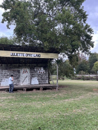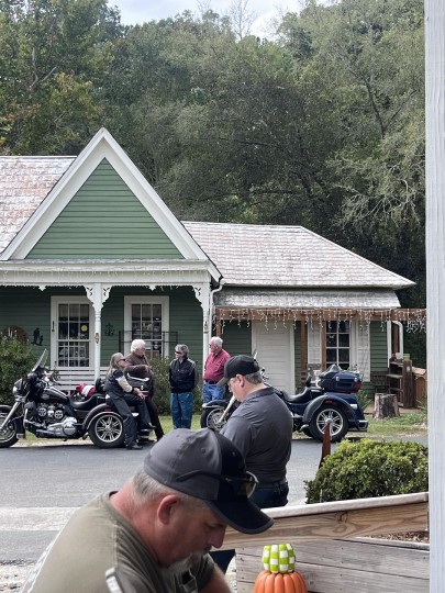 我在美国南部住了有一段时间了。在观看《油炸绿番茄》的时候,我忽然想,电影的拍摄地点是不是就在我附近的某个南方小镇呢?在网上进行了一番搜索,真的让我搜到了一篇local guide。这座叫Juliette的小城距离我住的地方大概要开两个多小时高速。我很少开这么远,想到又是完全陌生的路,心里还是有点忐忑。但看到电影里那些温暖美好的场景曾如此鲜活地出现在这个小镇上,我的心又被吸引着,决定还是要亲自去看看。 这个周末的天色稍微有些阴,但却也透下一丝丝温和的阳光。我的心情因此变得轻快,就这样沿着公路往东南边前进了。慢慢地,公路上的车流量开始变少,我不再紧张于超车与变道,开始享受这次孤独的公路之旅。下高速后,就是让人心旷神怡的乡间小道了。我想专注着只看前方,但是又不由得被擦身而过的牧场、乡间小屋、树林而吸引。也许它们和我往其他方向开时看到的风景差不多,但是因为我知道这条路的终点就是电影中的小镇,心中也不由得多了一份难以言表的期待。 热闹的人群只集中在McCrackin Street上。许多车辆停在这里,各地的影迷都相聚在这里。甚至还有两位奶奶是骑着摩托车来的,她们穿着很酷的皮衣,看起来好有精神!