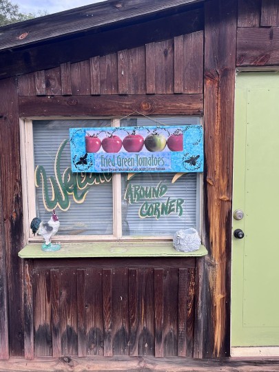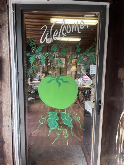 还有一些各式各样的礼品店、中古店,很好逛。我很喜欢这个玻璃门上画着的绿番茄。绿色番茄似乎是这个小镇的特产,她们还会时不时举办Green Tomato Festival。